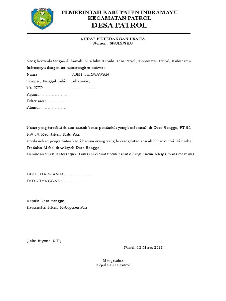 Surat Keterangan Usaha Indramayu : Contoh Surat Izin Tempat Usaha Situ Akseleran Blog / Yang bertanda tangan dibawah ini, kepala desa pabean udik kecamatan indramayu, kabupaten indramayu, menerangkan bahwa :. Yang bertanda tangan dibawah ini, kepala desa pabean udik kecamatan indramayu, kabupaten indramayu, menerangkan bahwa : Permohonan pendaftaran merek dapat memperoleh fasilitas pengurangan biaya dengan syarat melampirkan: Syarat pengajuan permohonan sku antara lain surat pengantar ktp, rt atau rw, dan kk. Sedangkan keterangan dari dinas koperasi usaha kecil menengah (ukm), perdagangan dan perindustrian (diskopdagin), kabupaten indramayu . Pemerintah kabupaten lebak pemerintah kabupaten indramayu kecamatan cikedung kantor desa amis jl.